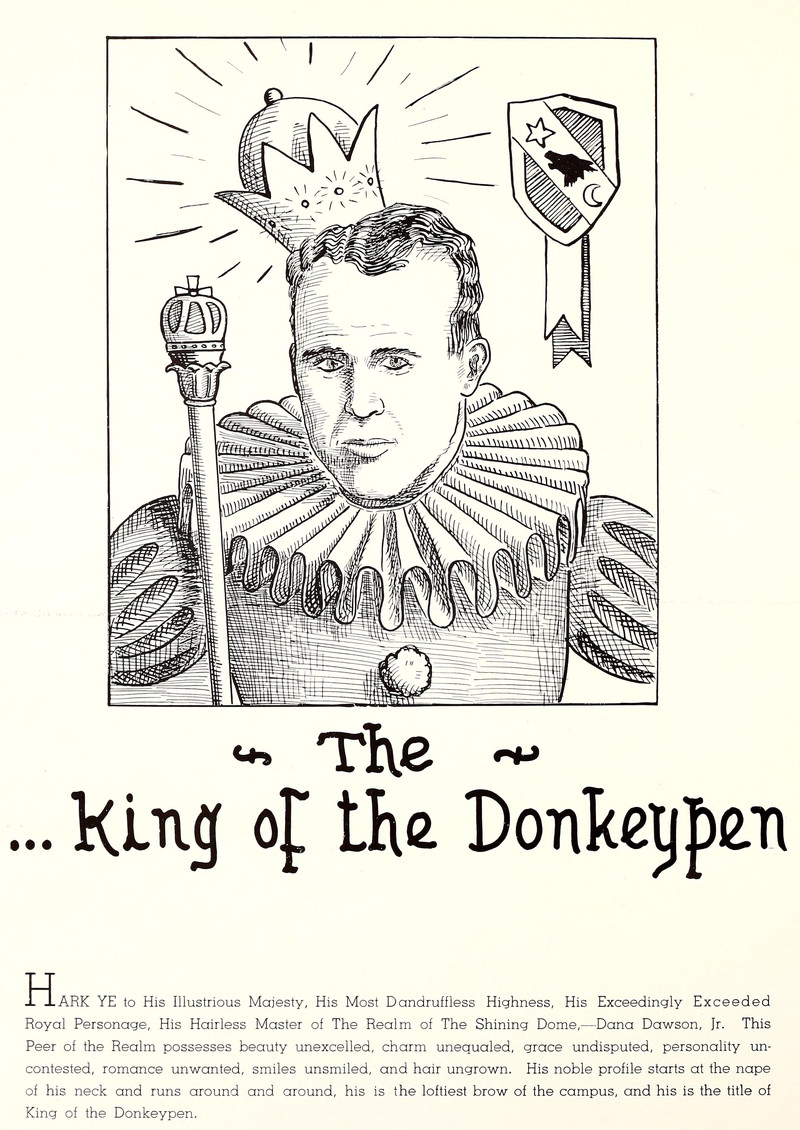 "King of the donkeypen."  From Centenary College's 1937 yearbook.