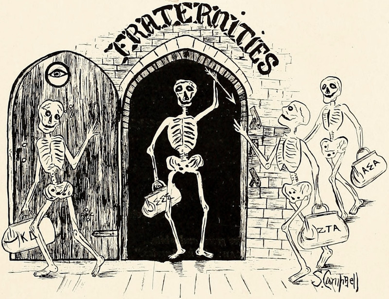 #vintage illustration #skeleton #fraternity #vintage yearbook #yearbook #secret society