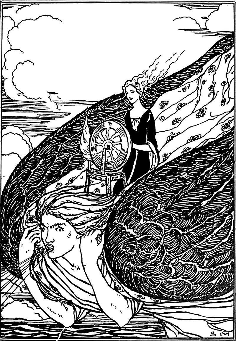 "The center of the cross is the earth and man, moved by the conflicting influences of the gods and winds."