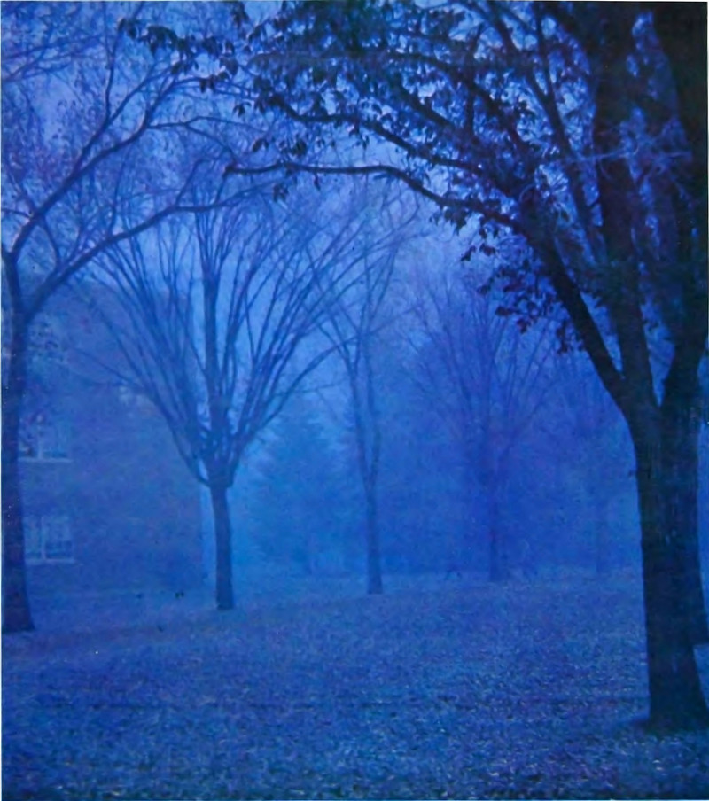 You'll have noticed the gem-like lens flares hovering in the street. These are the treasures that night people seek but rarely find due to night blindness. It takes a camera lens to see them. From Salve Regina's 1971 yearbook.