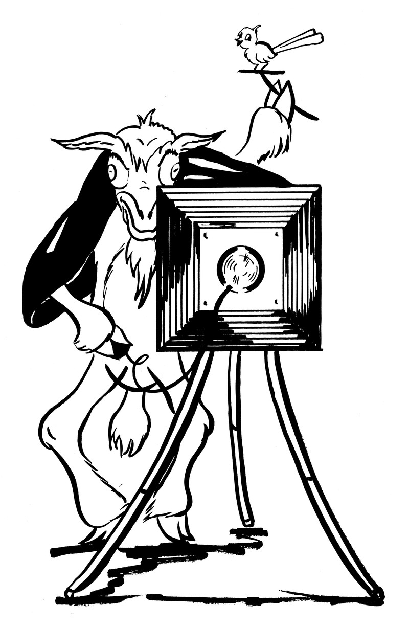 #vintage illustration #anthropomorphism #goat #vintage yearbook #yearbook #camera #photographer #illustration #1950s