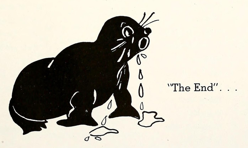 #vintage illustration #vintage yearbook #yearbook #the end #crying animal #1940s #illustration #seal