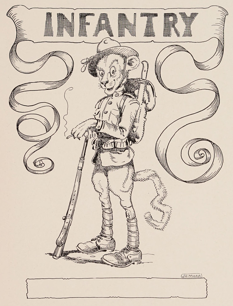 #vintage illustration #anthropomorphism #cat #vintage yearbook #yearbook #1920s #illustration #infantry