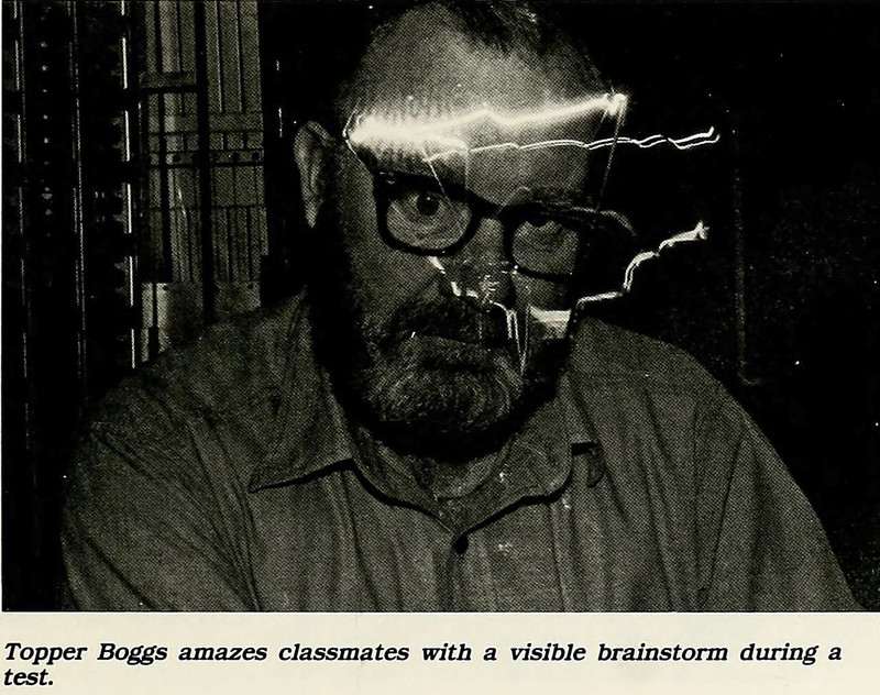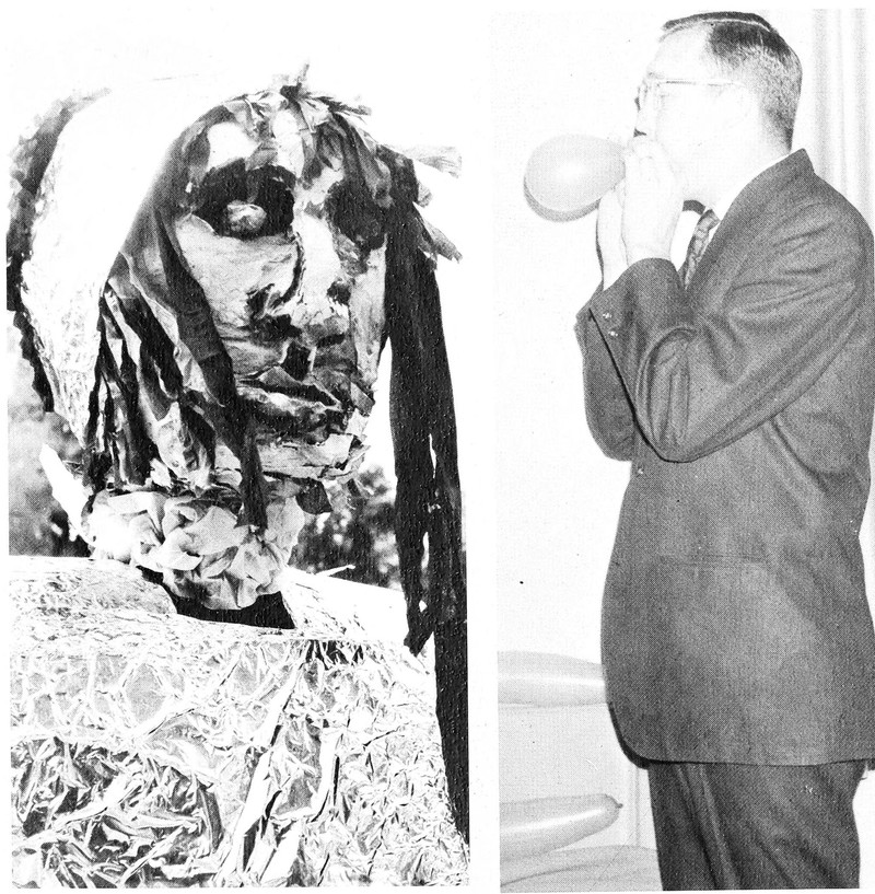 Mop wigs are not restricted to elegant looks. Casual, carefree, even silly moments may be enhanced with mop wigs. From Southern Methodist's 1948 yearbook.