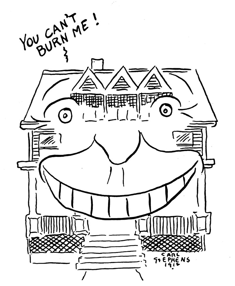 #vintage illustration #vintage yearbook #yearbook #faces in things #illustration #fireproof #house