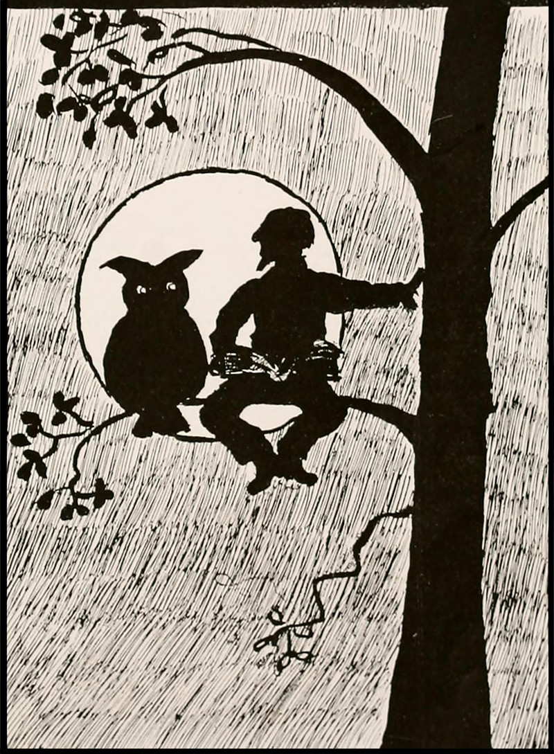 #vintage illustration #owl #silhouette #vintage yearbook #yearbook #illustration #up a tree #1910s