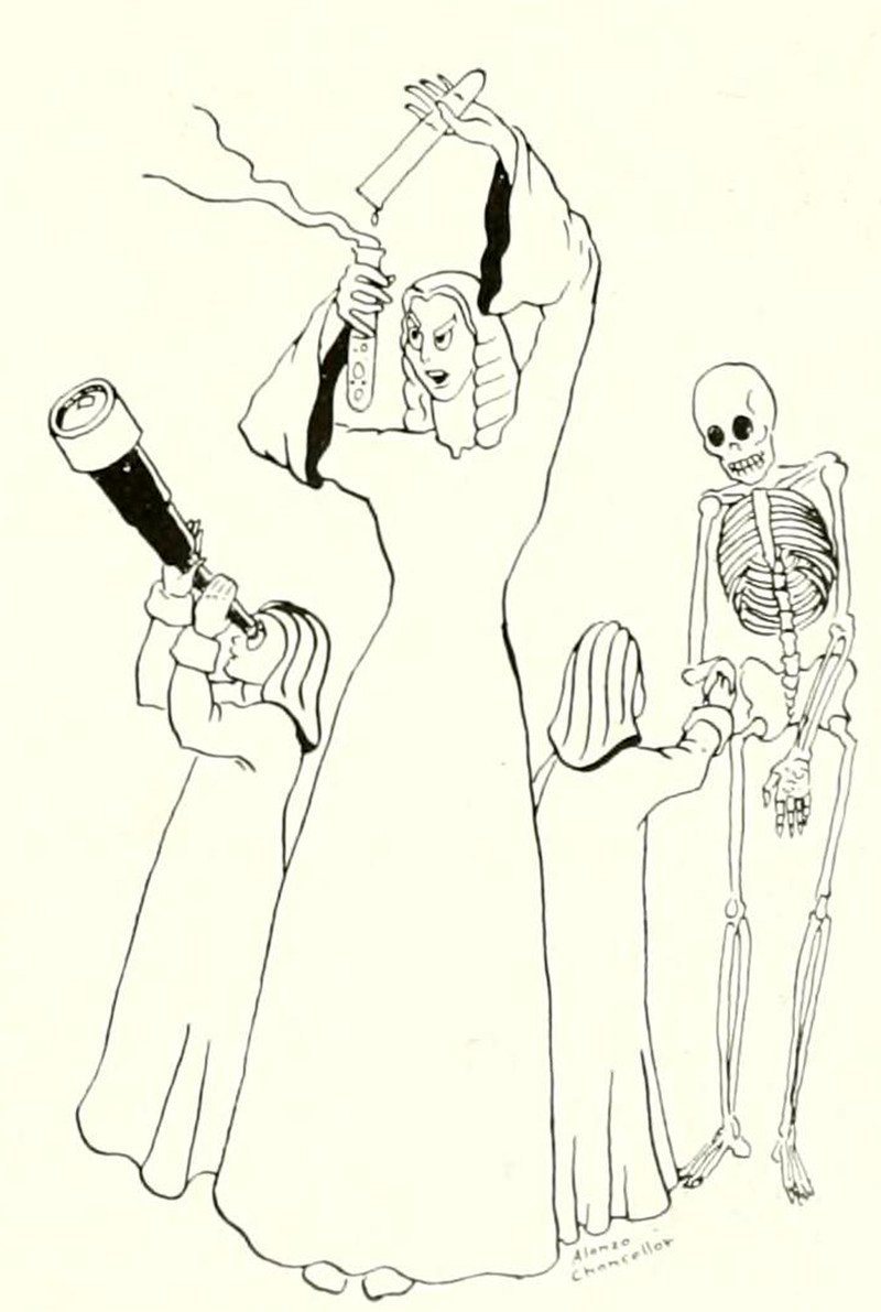 #vintage illustration #skeleton #science #vintage yearbook #yearbook #chemistry #1940s #illustration