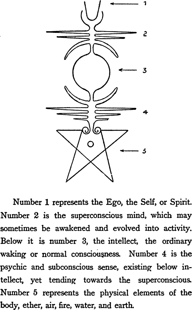 The intellectual, emotional, and physical centers of the human construction, from The Gate Beautiful by John Ward Stimson, 1903.