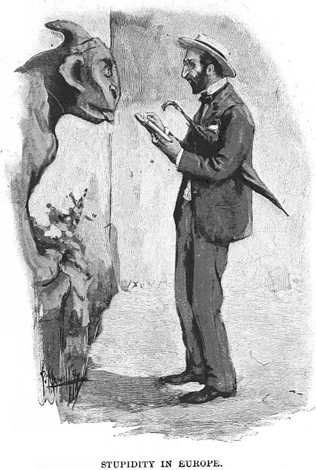 An illustration from an 1855 issue of Punch magazine. The caption reads: "Interesting group posed for a daguerreotype, by a dear friend of the family . . . Interesting and valuable result."