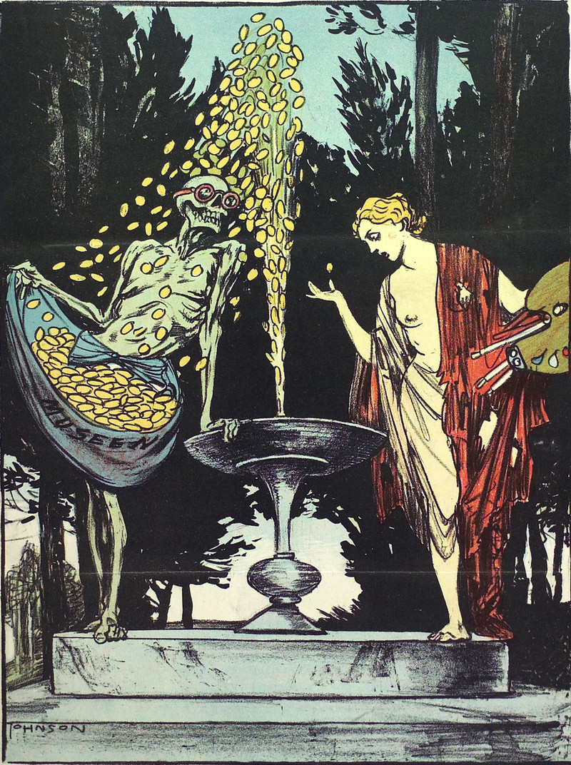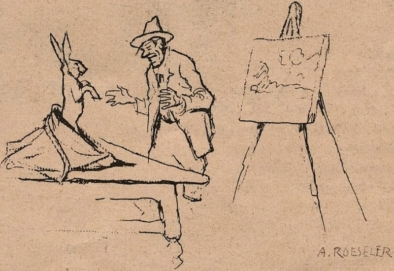You've no doubt heard the argument that modern art is a racket engineered by art dealers, that the whole thing is a kind of vast and very expensive practical joke. In a letter to Esther Harding (7/8/47), Carl Jung wrote, "I am only prejudiced against all forms of modern art. It is mostly morbid and evil on top [of that]." Our illustration is from Fliegende Blätter, 1931.