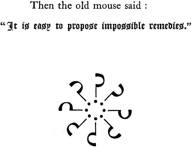 "Then the old mouse said: 'It is easy to propose impossible remedies." From The Fables of Æsop by Joseph Jacobs, 1894.