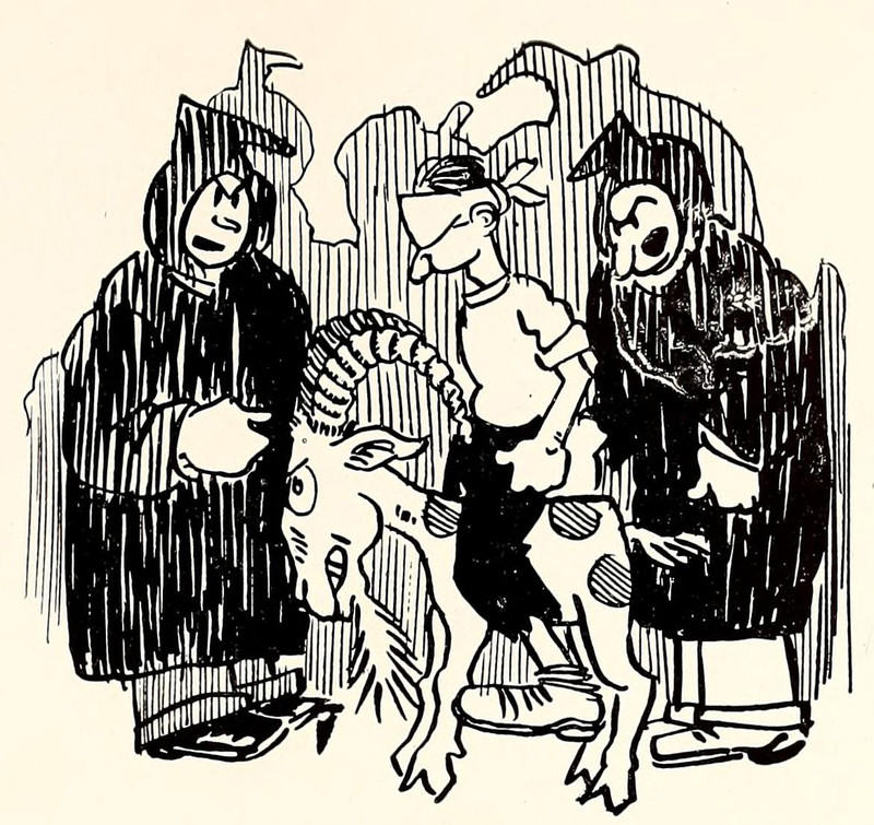The goat waits in the shadows.  From Swarthmore's 1898 yearbook.  See How to Hoodoo Hack a Yearbook.