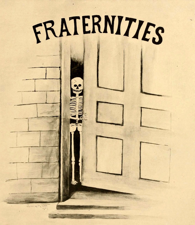 #vintage illustration #skeleton #fraternity #vintage yearbook #yearbook #secret society