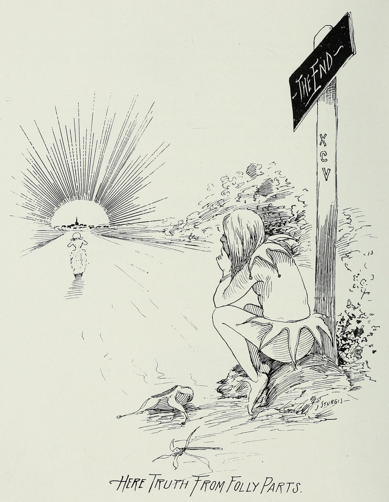 #vintage illustration #jester #the end #signpost