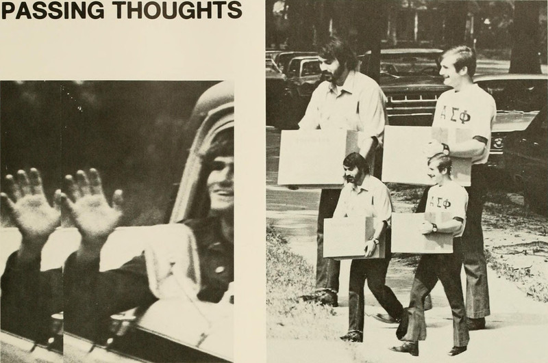 Though it could possibly be the sun or the moon shining through the tree's branches, we've seen enough mysteriously glowing trees in old yearbooks that we take nothing for granted. From UNC Chapel Hill's 1963 yearbook.