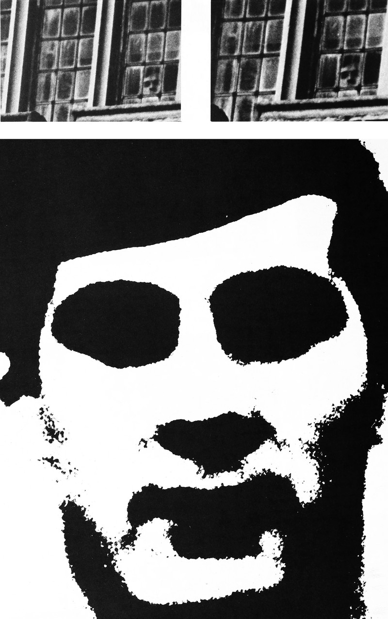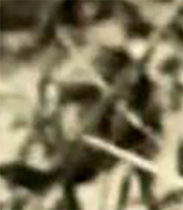 In the distance, where the third man is looking — isn't that an enormous sculpture of a human head? It also looks as though a figure is curled up in front of the head, though what we initially took as the figure's shoe seems to be a beer bottle.