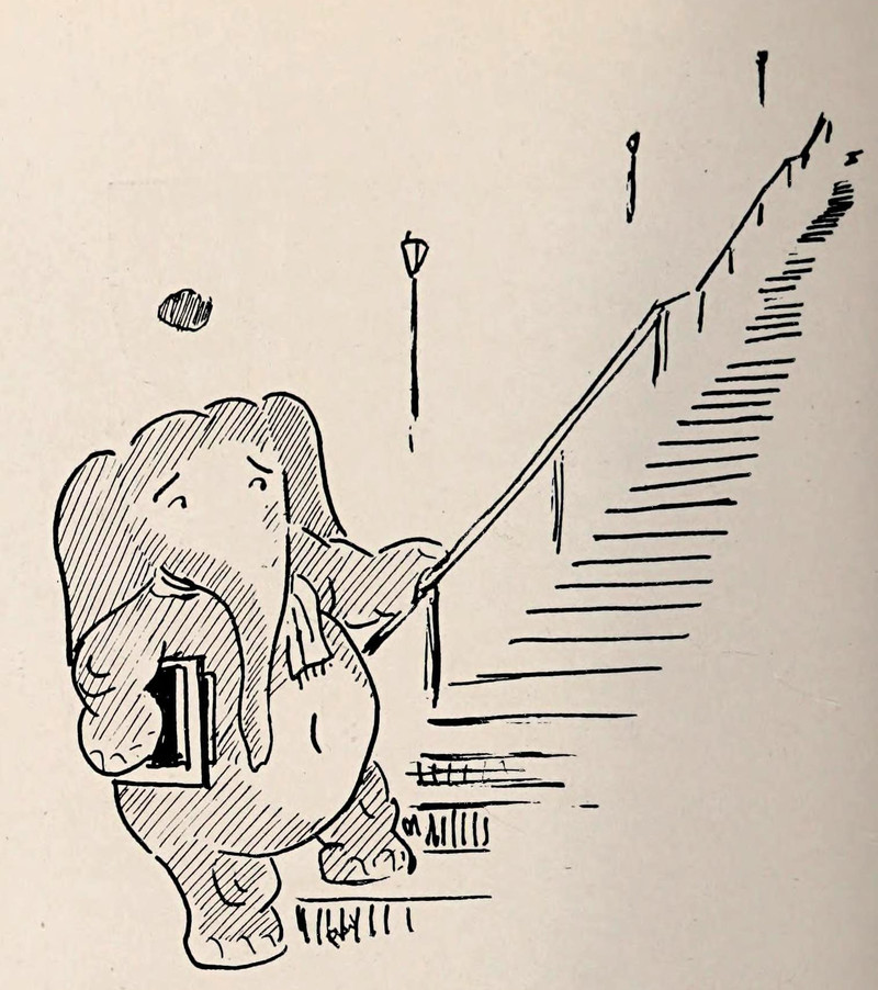 #vintage illustration #elephant #vintage yearbook #yearbook #1940s #illustration #stairs