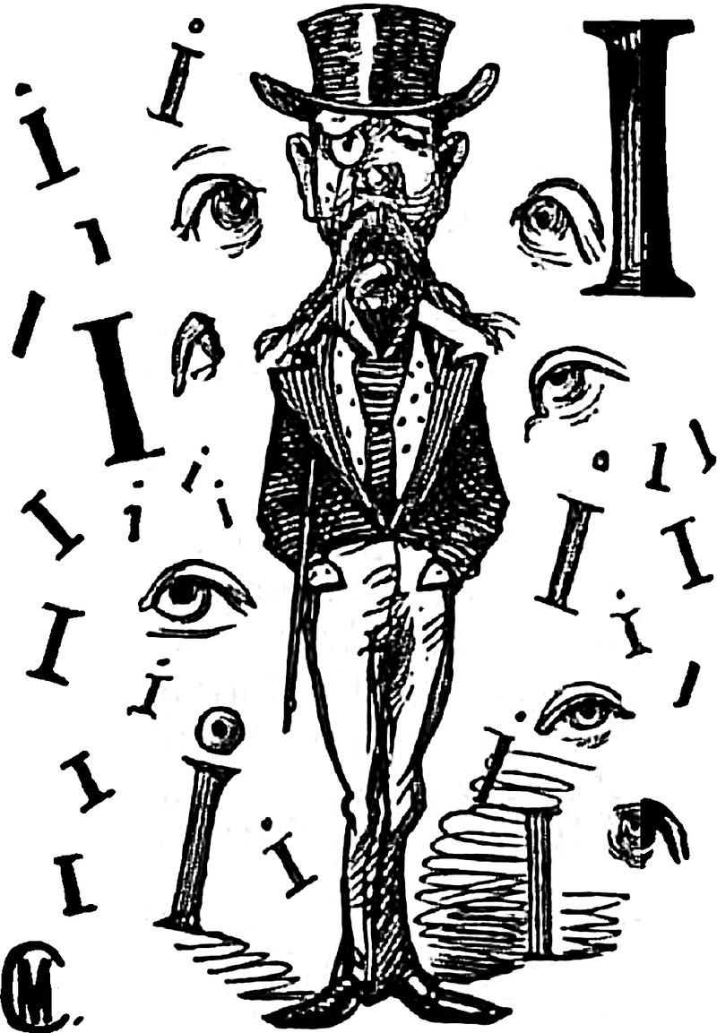For what this means, see (or course) our very own One-Letter Words: A Dictionary (and though the hardcover is out of print, the e-version remains "out there"). Our illustration is from The Galaxy magazine, 1866.