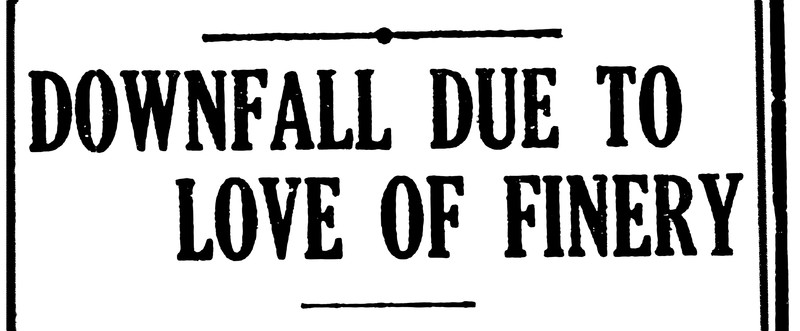 "Downfall due to love of finery."  From The Duluth Herald, 1910.