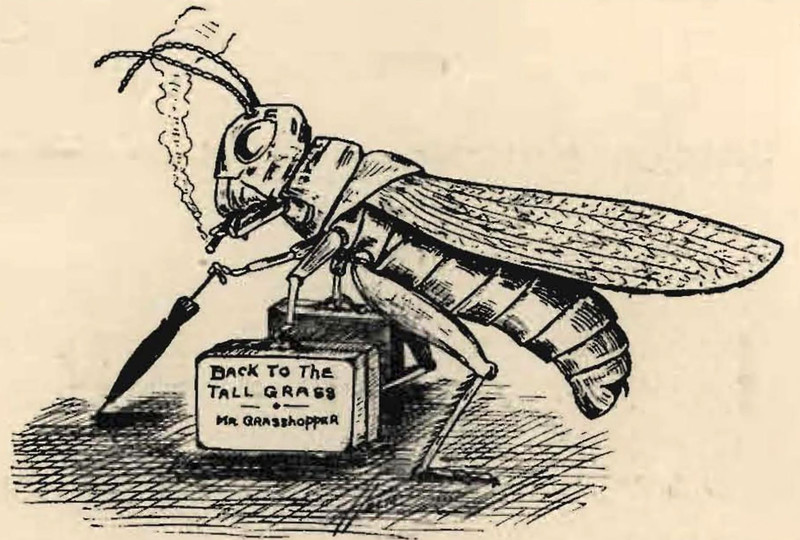 #vintage illustration #anthropomorphism #vintage yearbook #yearbook #grasshopper #1900s #illustration