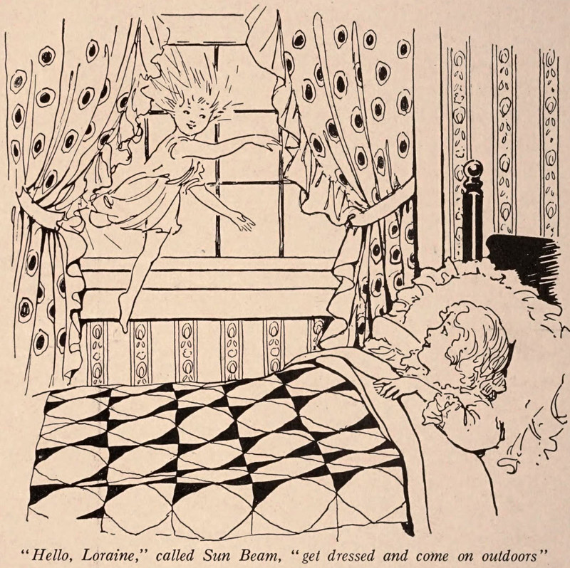 This is why we use room-darkening window shades. From Loraine and the Little People of Spring by Elizabeth Gordon and illustrated by Ella Dolbear Lee, 1918.