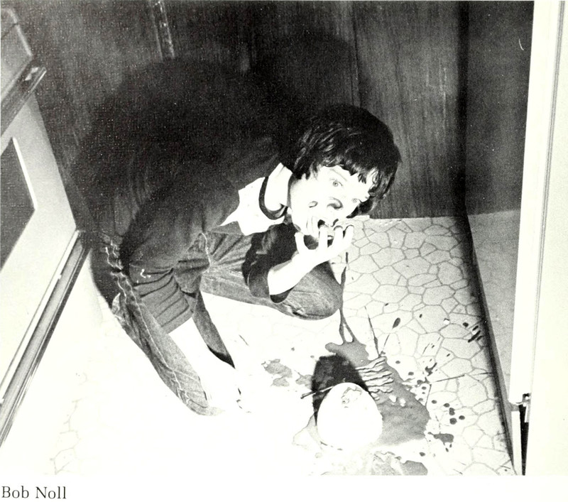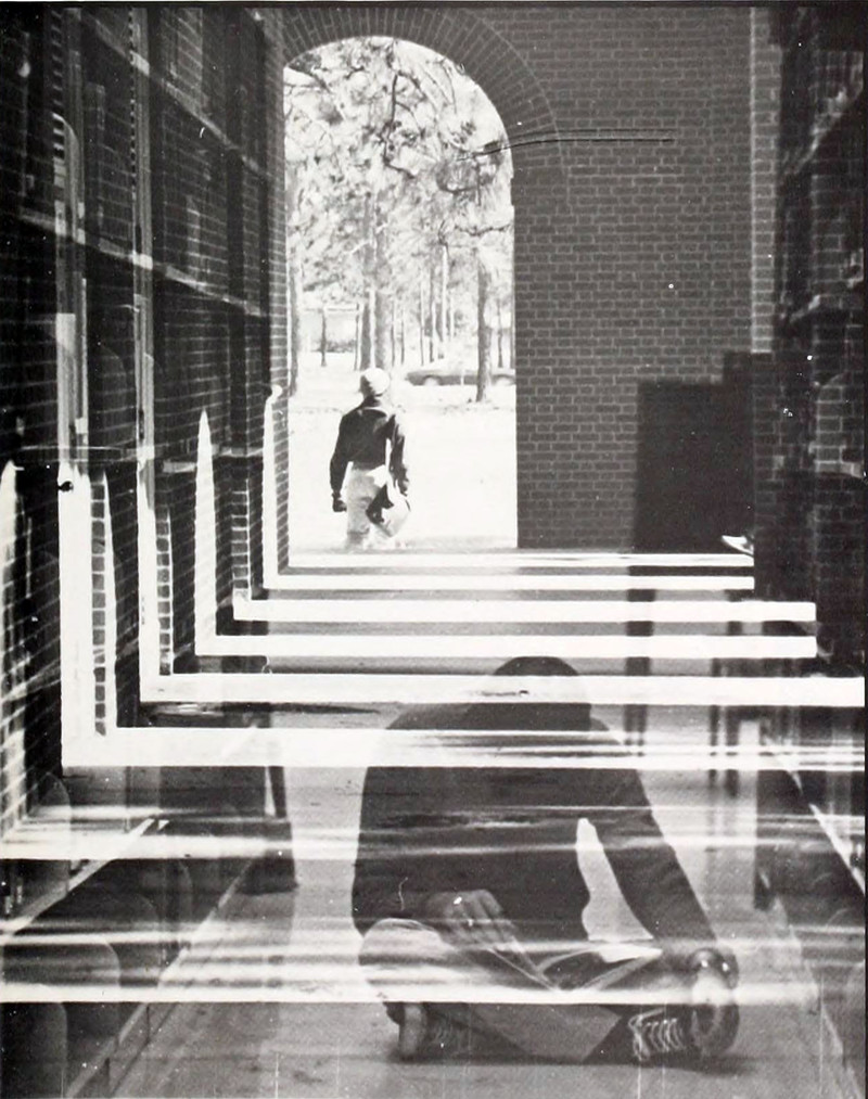 This is beyond cool because it's a "real world" example of a weird phenomenon that we explain in the book The Ghost in the [Scanning] Machine. When old books are digitally scanned, the translucent tissue guards in front of plates reveal ghostly manifestations, eerily like spirit photography. In this old yearbook, the exact effect has been created deliberately, without tissue paper. From Mount Olive Junior College's 1960 yearbook.