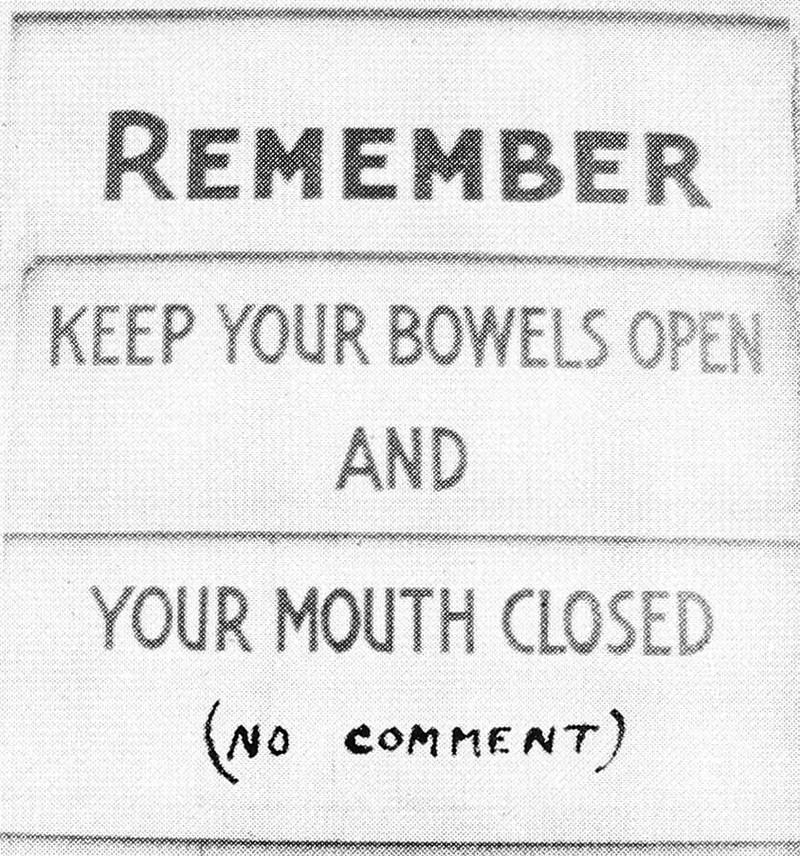 "Remember: Keep your bowels open and your mouth closed."  From Ontario Agricultural College's 1946 yearbook.