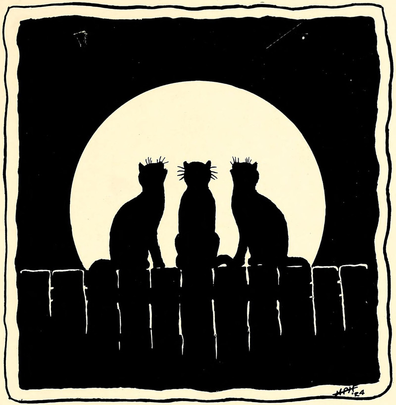 #vintage illustration #silhouette #full moon #cat #vintage yearbook #yearbook #1930s #illustration