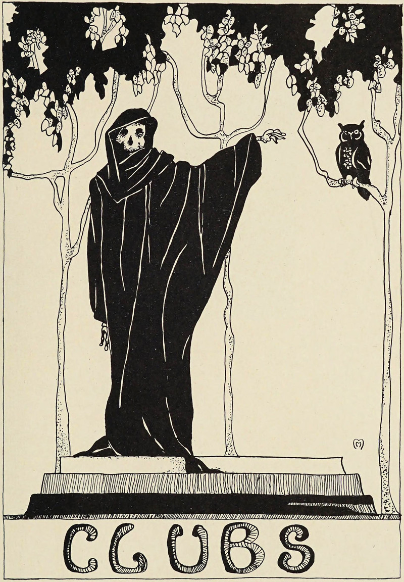 #vintage illustration #owl #grim reaper #vintage yearbook #yearbook #1920s #hooded figure #illustration