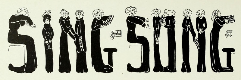 #vintage illustration #vintage yearbook #yearbook #ornate letter #singing #illustration #1910s