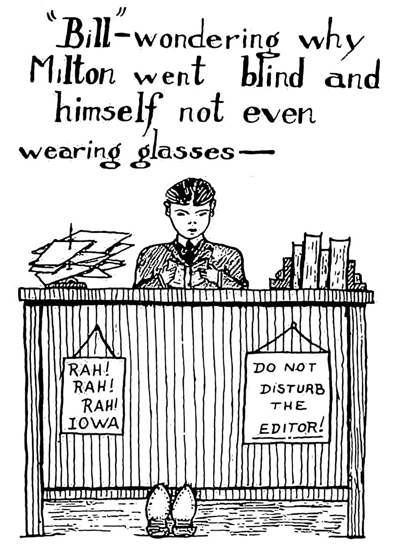 "Bill—wondering wht Milton went blind and himself not even wearing glasses."  From Concordia University's 1927 yearbook.