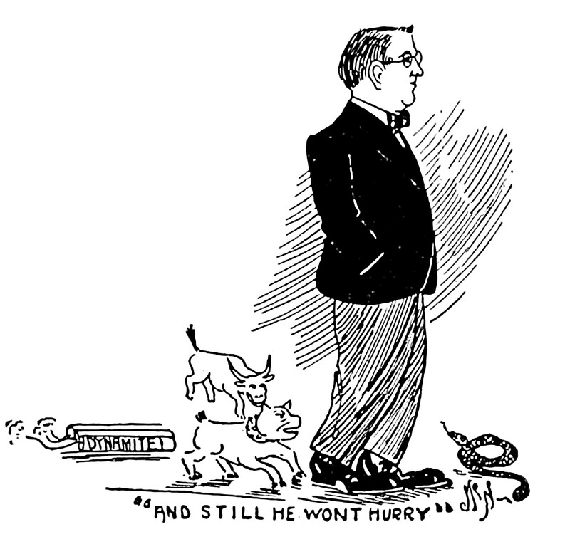 "And still he won't hurry."  From Kansas State Agricultural College's 1911 yearbook.