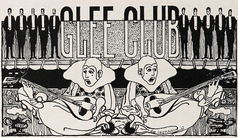 #vintage illustration #clown #vintage yearbook #yearbook #mandolin #musician #illustration #glee club #1910s