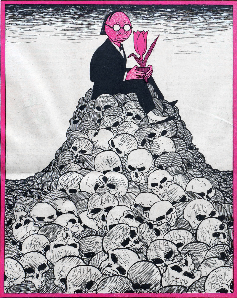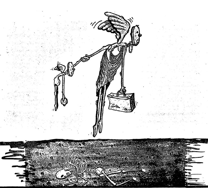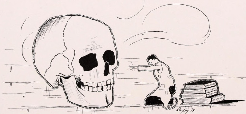 A swimming skeleton. From La Grimace, 1918.