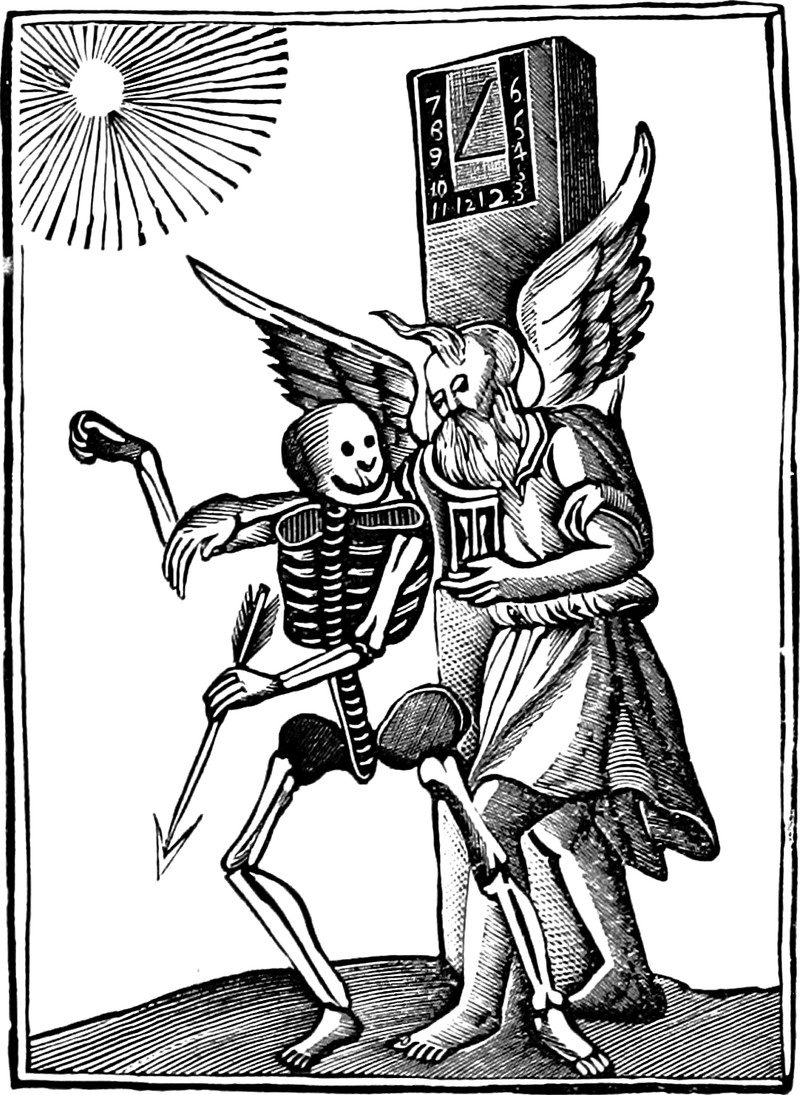 Here's a precursor to Menke Katz's line about how "Even time is tired here of night and day" ("Old Manhattan," Rockrose, 1970). This tired Father Time appears in Illustrated Poems and Songs for Young People, edited by Lucy Sale Barker, 1885.