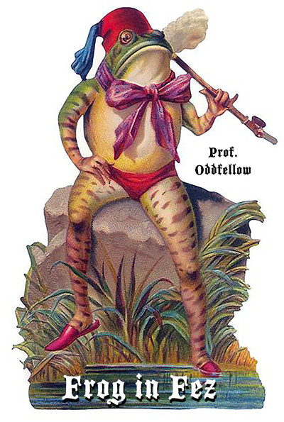 A yuletide without a ritual appeasement of the Frog in Fez? Unimaginable—and yet, who today can honestly comprehend the holiday cards of old in which a pipe-smoking frog in a fez sent best wishes for Christmas? It would seem that all things, animate and inanimate, worlds, suns, systems, Christmases, and frogs, their cycles have! Nothing abides. Through the endless tides of time, the law of change is written everywhere (except upon out-of-print holiday greeting cards). In and of it all, endowed with a brief personality like a frog in a fez, we grope, guess, gasp, and are gone. Oh, the lost, forgotten traditions of a household! Of a people! Of a world! Why is this thus? Why is anything thus?