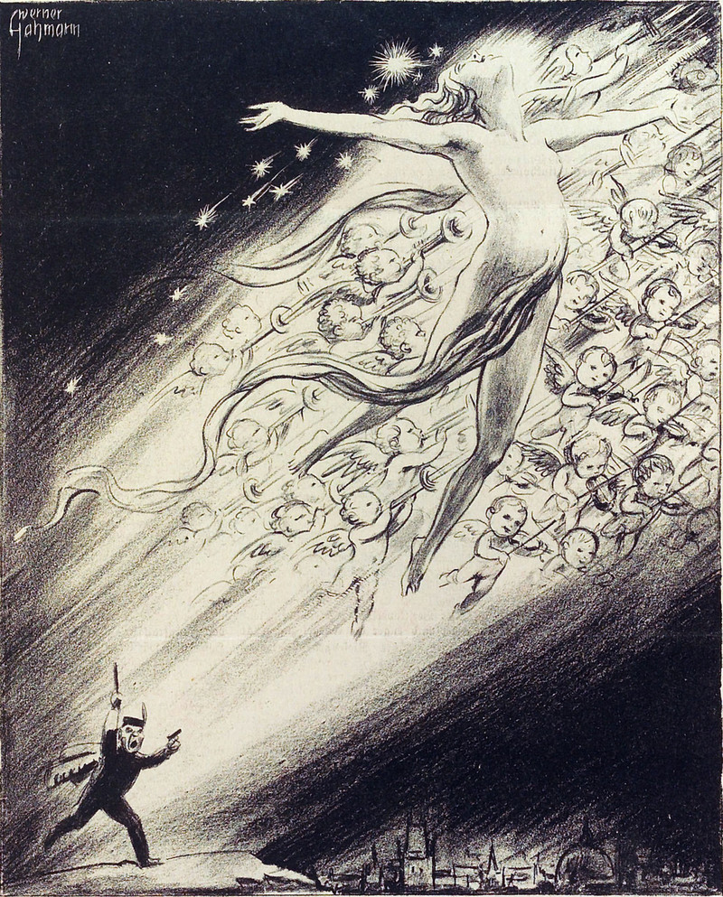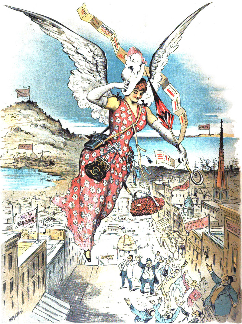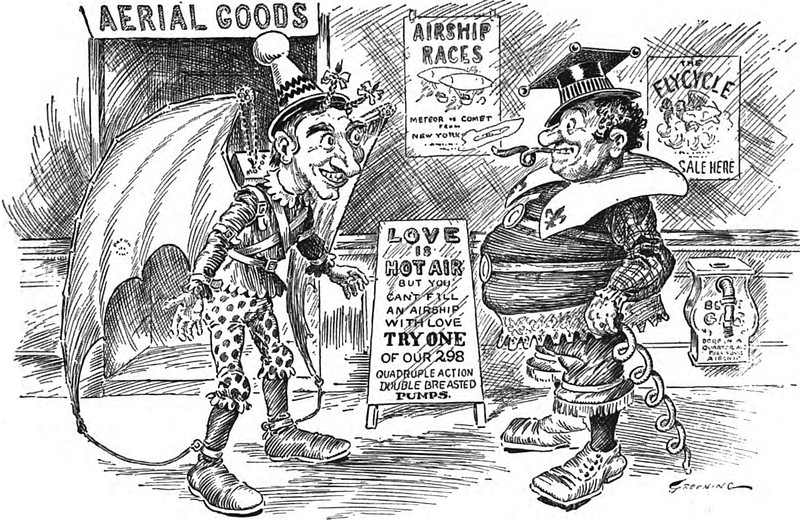 Here's a precursor to the flying monkeys in The Wizard of Oz. From Le Courrier Français, 1887.