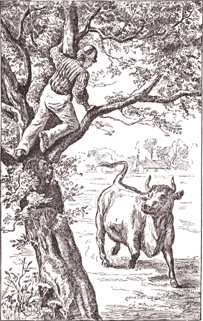 #vintage illustration #bull #illustration #up a tree