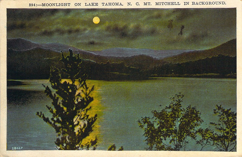 #vintage illustration #full moon #night #vintage postcard #lake tahoma #postcard