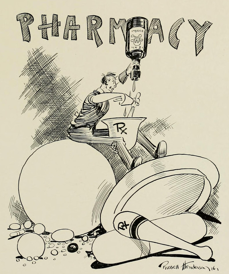#vintage illustration #mad scientist #poison #vintage yearbook #yearbook #medicine #illustration #pharmacist