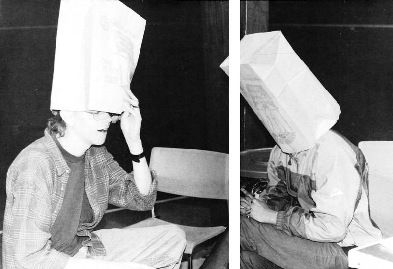 #vintage yearbook #yearbook #paper bag head #1990s