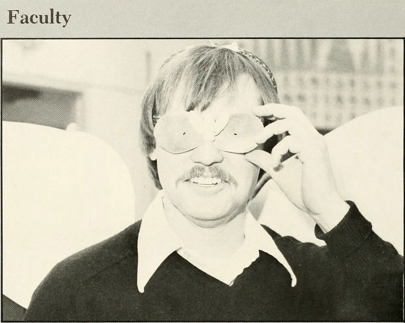 These are faculty members. Note that the man in the middle has a witch eye (the eye to our left). From Olivet Nazarene's 1959 yearbook. See How to Hoodoo Hack a Yearbook.