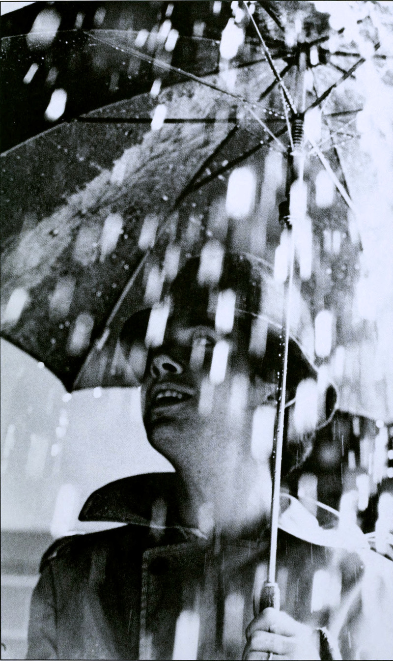 Rain always looks like this to those with slow metabolisms. Also note that he has a cat's eye. Cats can slow time, which is how they're able to catch mice at seeming lightning speed from the observer's perspective. From American's 1985 yearbook.