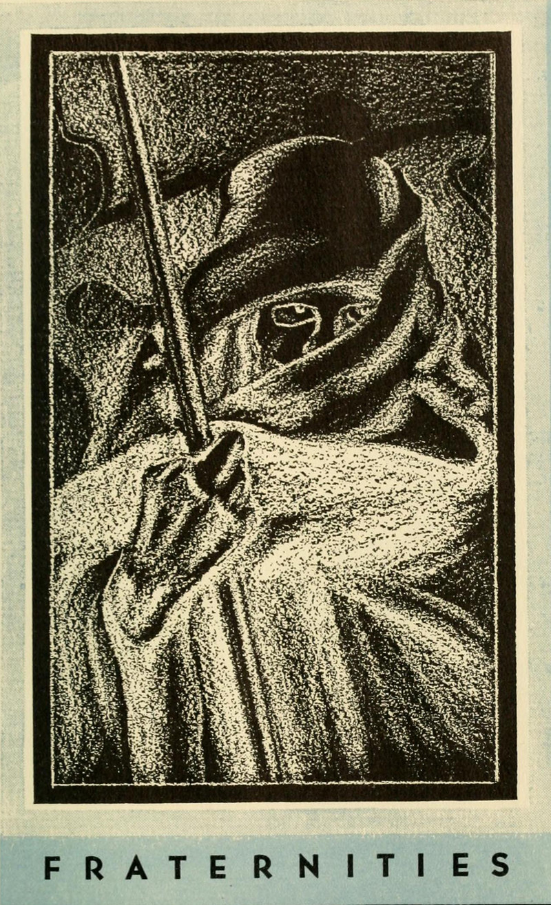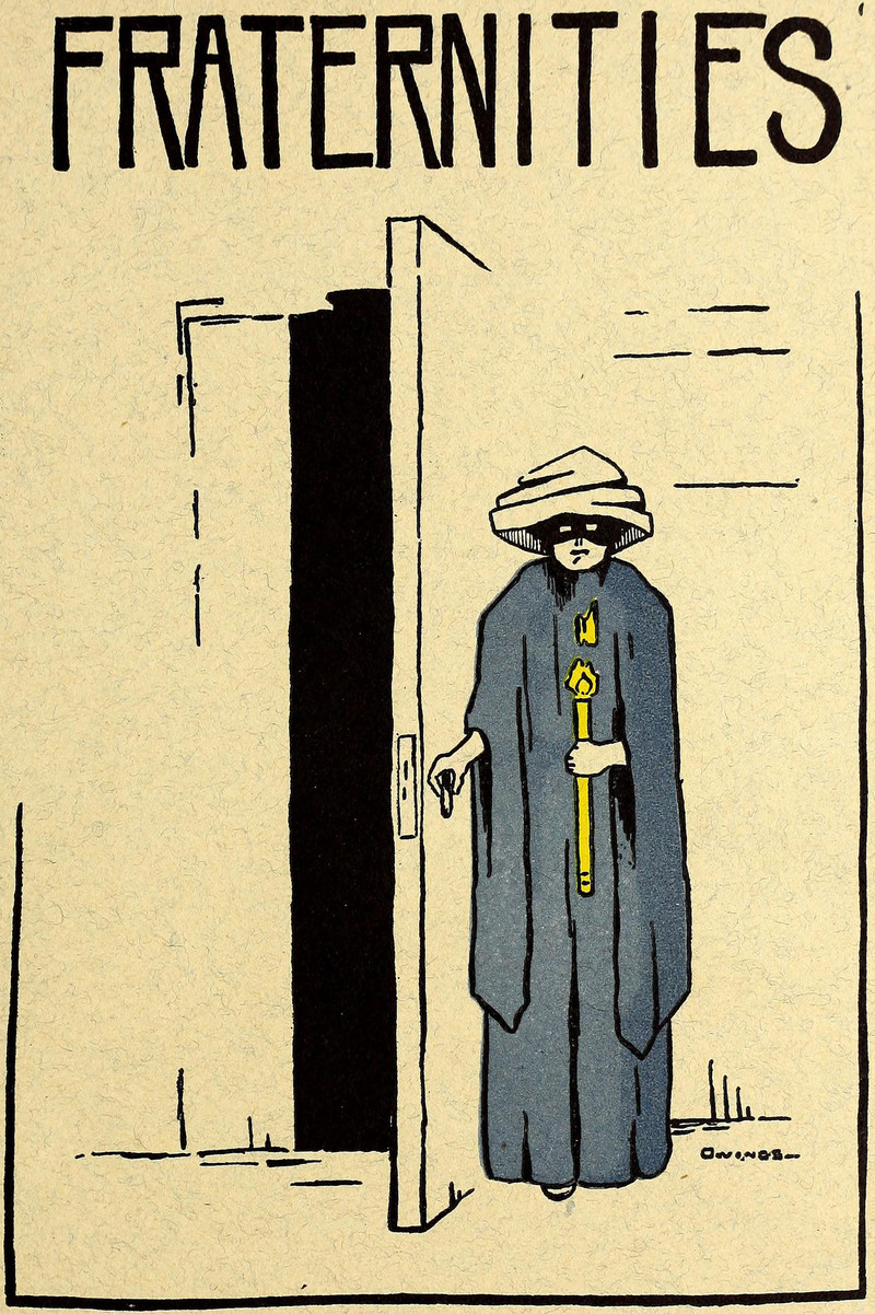 Today's giant-headed skeleton with crossed walking sticks riding a goat, an iPad flying out his bag, is from the 1893 yearbook of the University of Kansas. See How to Hoodoo Hack a Yearbook.