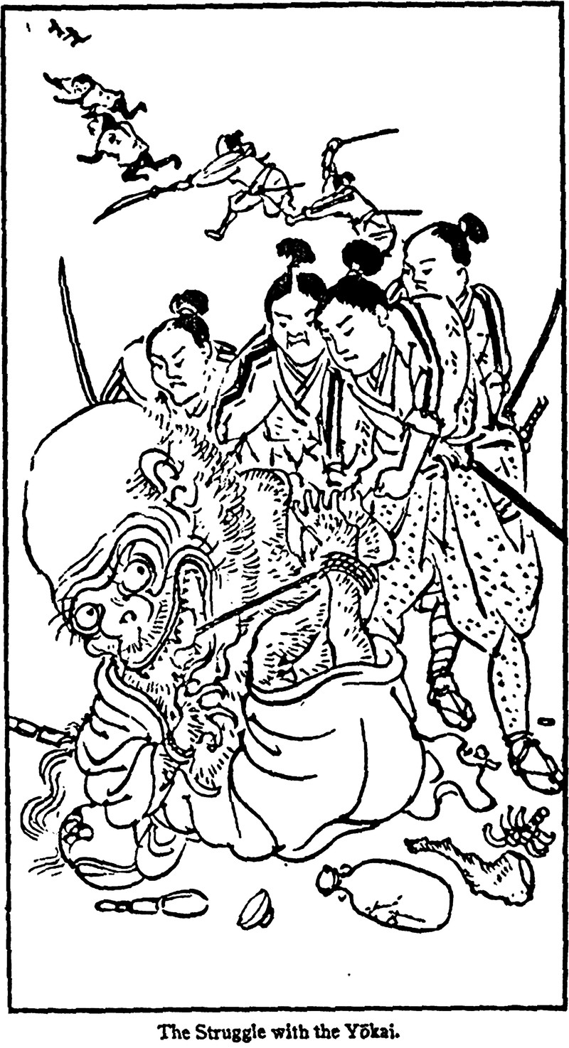 However many heads he has doesn't matter, for "I am the descendant of the gods, and I cannot give way before a monster like that." From Fairy Tales from Far Japan translated by Susan Ballard, 1908.