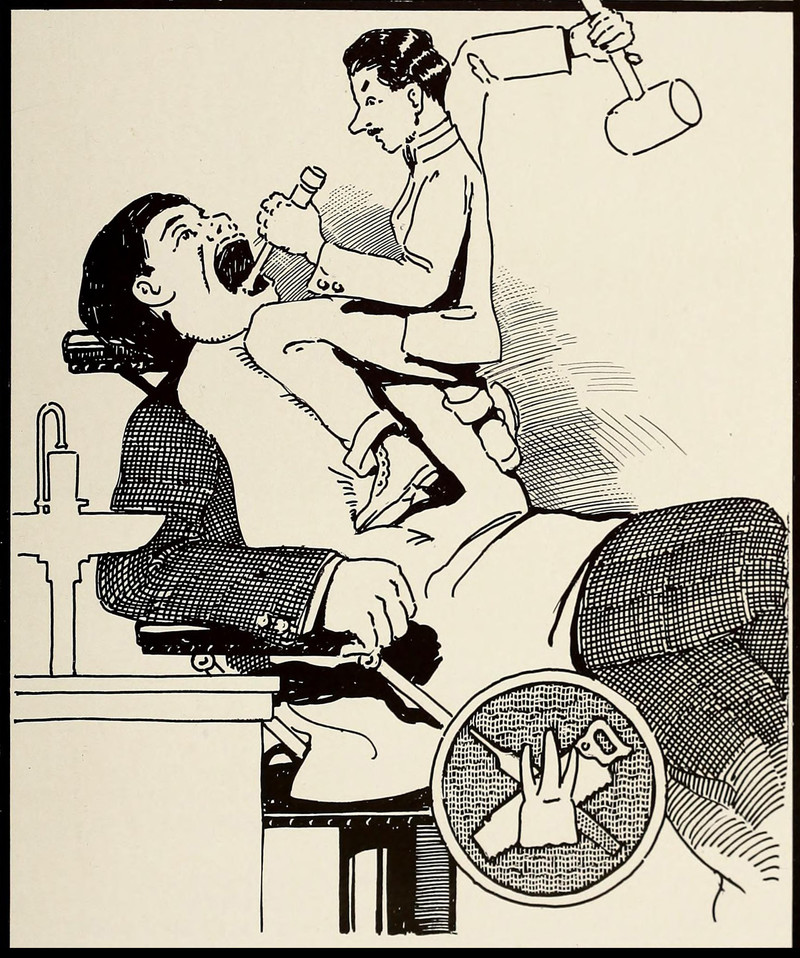 #vintage illustration #vintage yearbook #yearbook #tiny man #dentist #illustration #1910s