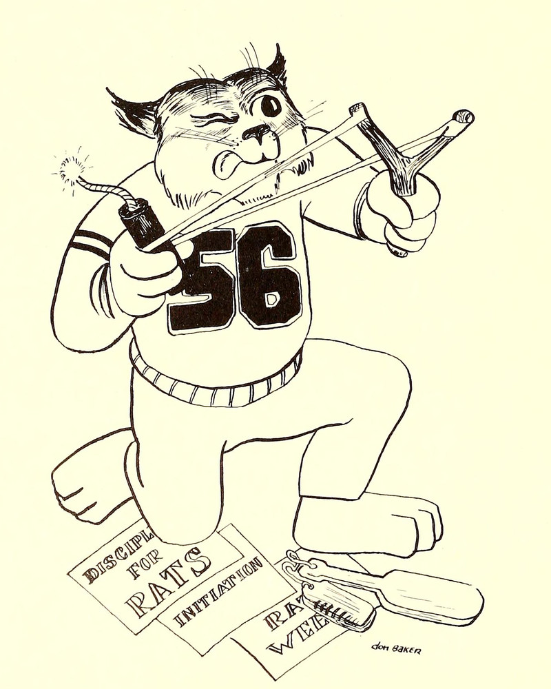 #vintage illustration #anthropomorphism #cat #vintage yearbook #yearbook #dynamite #illustration #slingshot #1950s