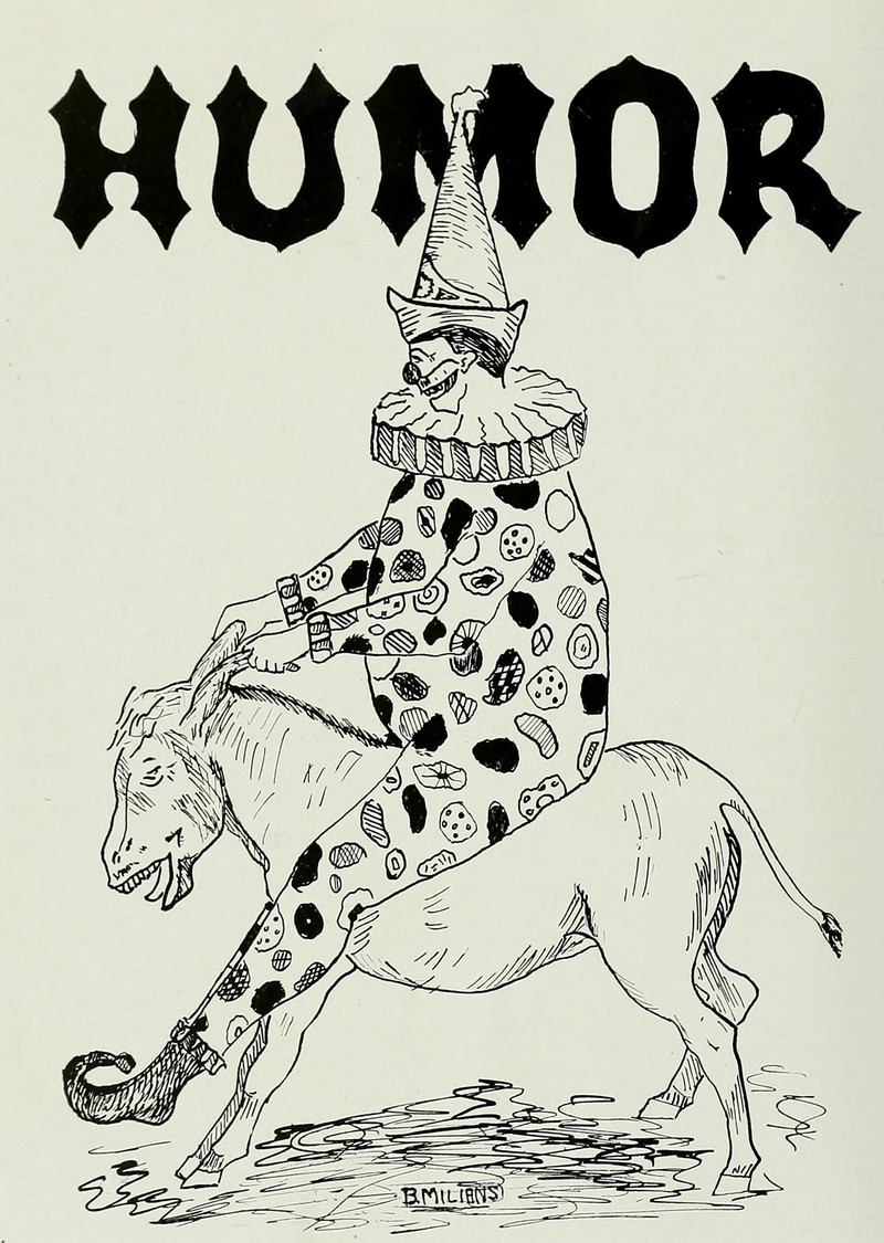 #vintage illustration #clown #vintage yearbook #yearbook #donkey #1930s #illustration
