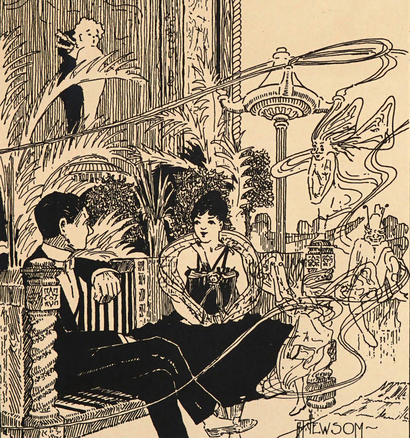 Roped in by fairies.  From Armour Institute of Technology's 1916 and 1918 yearbooks.