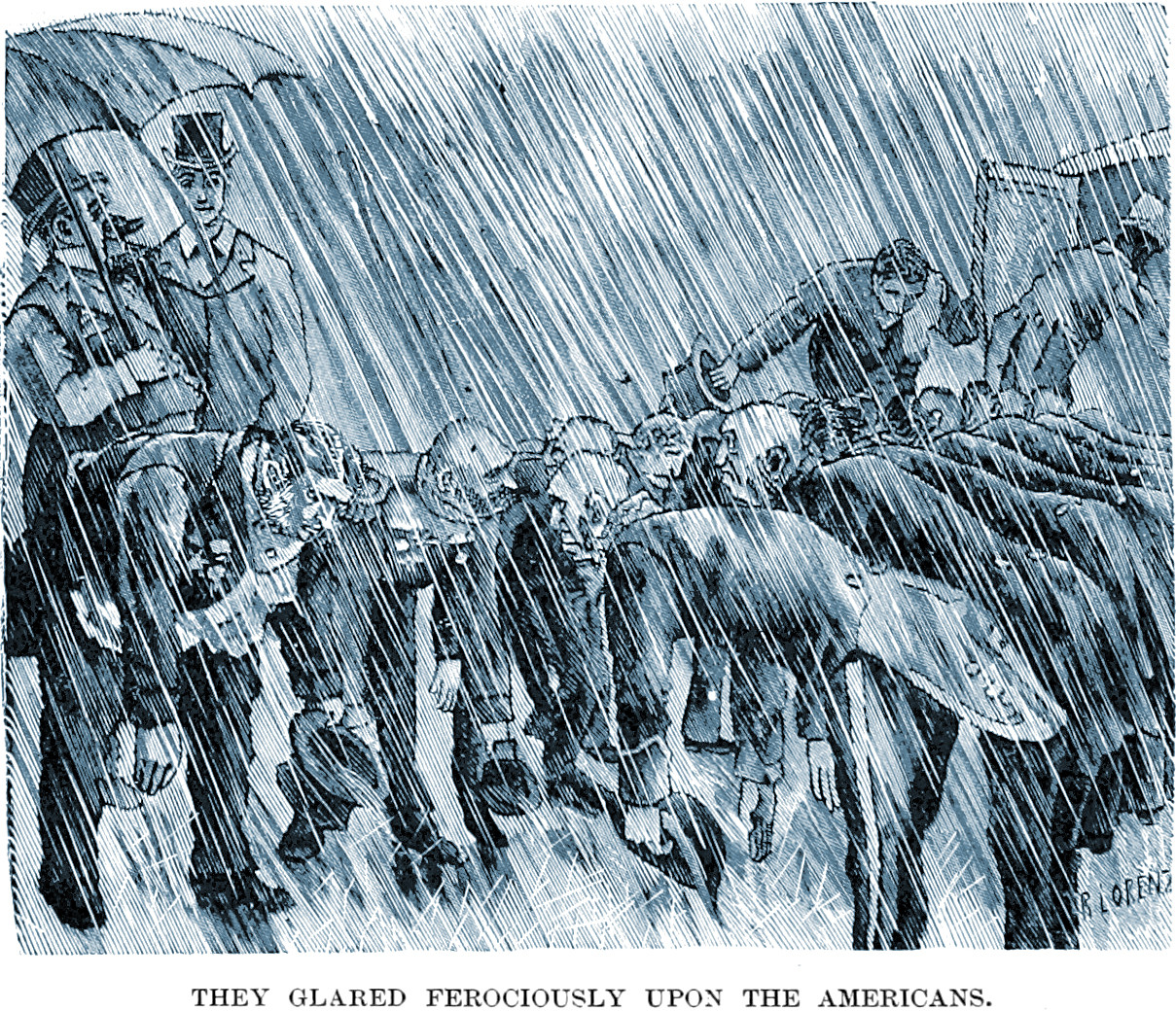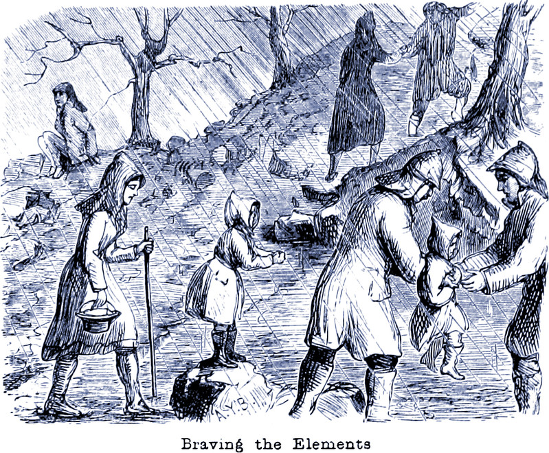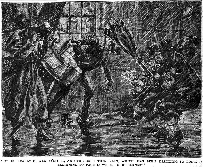 "He goes and comes with silent feet. He sobs amid the rain." From Red Apple and Silver Bells by Hamish Hendry and illustrated by Alice B. Woodward, 1899.